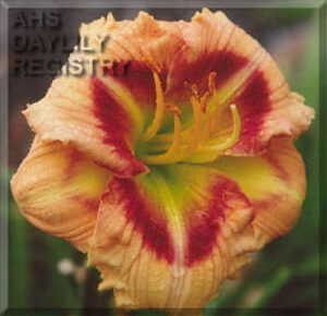 Amazing Morris Kirby (Herrington-T., 2007) DF Diploid, Semi-evergreen, Early season w/Rebloom. 24″ scape height, 3.5″ bloom size. 28 buds, 6 branches. Color: Light apricot with red eye above green throat. Parentage: (Everybody Loves Earnest × Peppermint Delight)